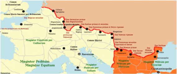 W IV wieku – na skutek intryg wewnętrznych (w efekcie zarządzeń cesarskich) – rozpadło się Imperium, a wraz z nim jego nowa substancja spajająca – chrześcijaństwo. Za Konstantyna Wielkiego dokonano podziału Cesarstwa Rzymskiego na cztery prefektury – Wschód (Konstantynopol), Illyricum (Sirmium), Italia (Mediolan) oraz Galia (Trewir).