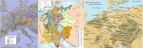Mapki poniżej pokazują, jak Germania (to określenie rzymskie, Niemcy sami siebie określali słowem „teut”, czyli „naszość, swojość”) upaństwowiała się od formuły luźnego związku ku formule „kaiserowskiej”, z zachowaniem poszanowania dla różnorodności: